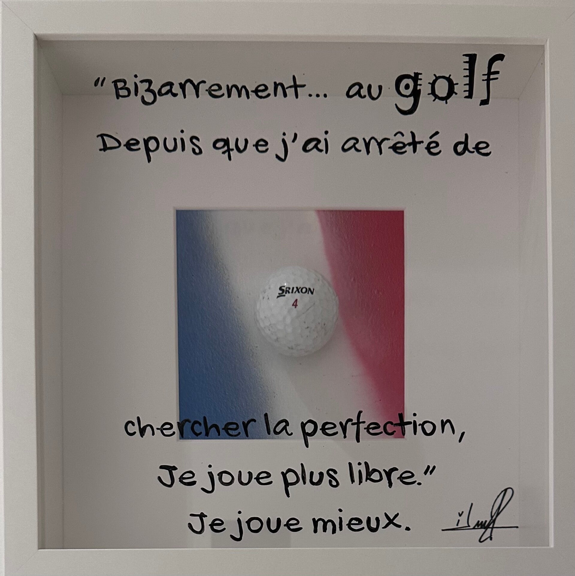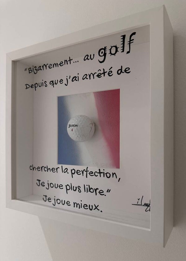 Peinture acrylique et balle de golf.