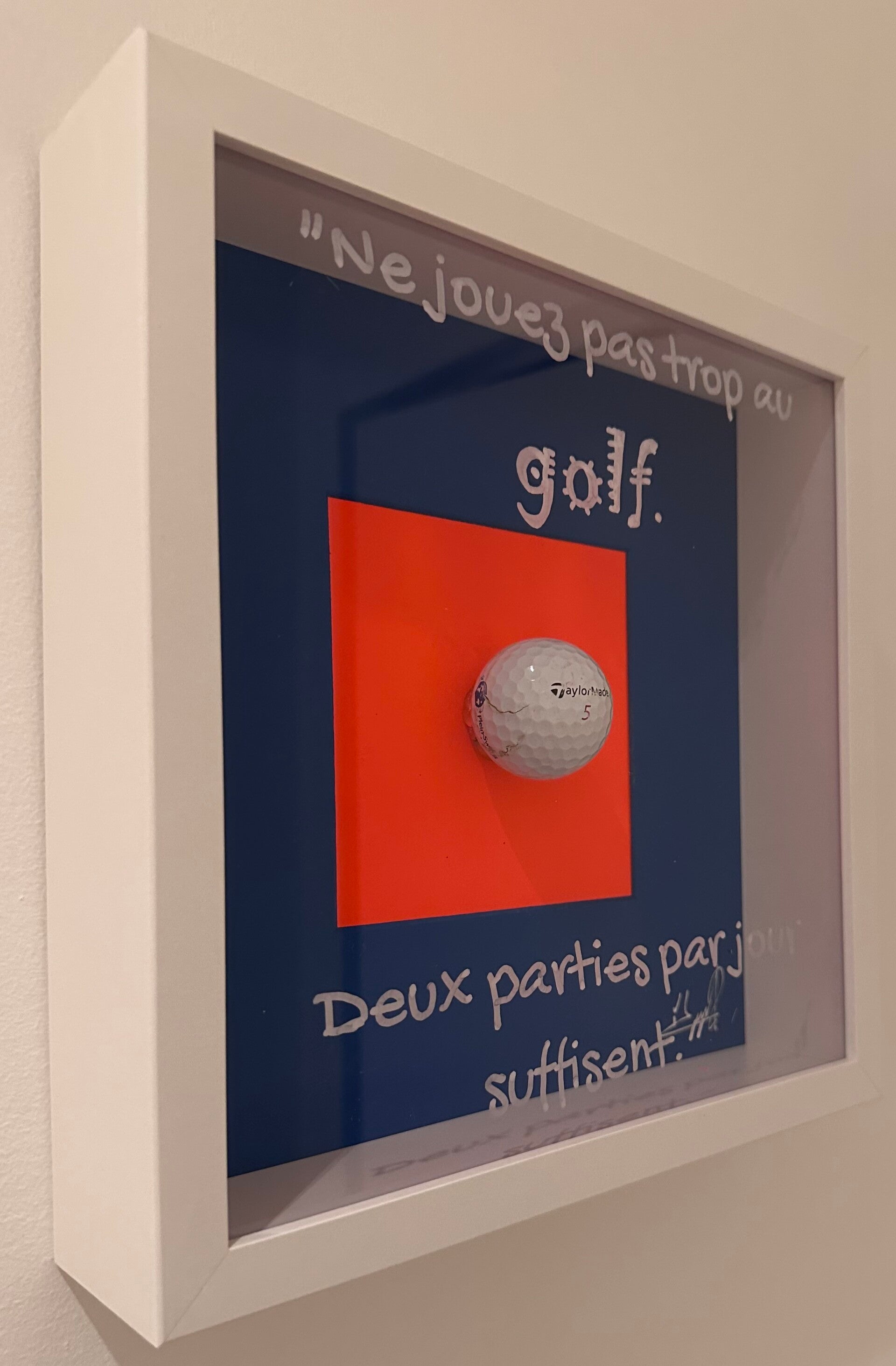 Peinture acrylique et balle de golf.